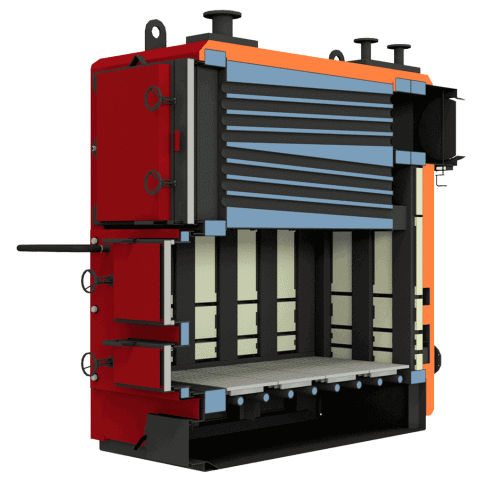 Cazane de încălzire industrială cu tub cald, de tip MEGA – o combustie de lungă durată, care funcționează în modurile de încărcare manuală a combustibilului și a combustibilului. Sunt instalate în cazane transportabile și staționare cu sisteme închise de alimentare cu căldură. Gama de putere: 600-1500 kW. Schimbătorul de căldură al cazanului este căptușit cu piatră șamotă.